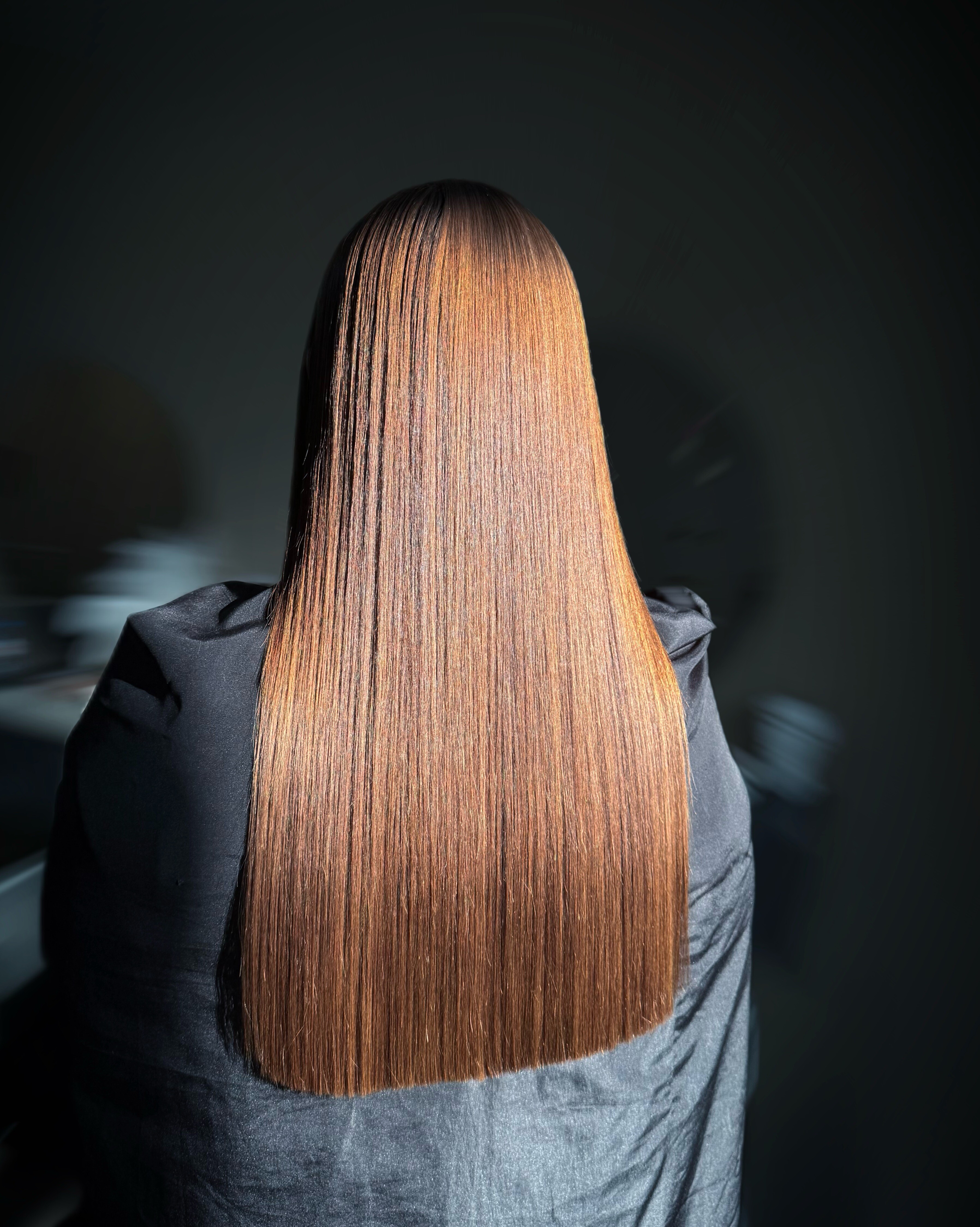 - Кератиновое выпрямление волос до конца лопаток