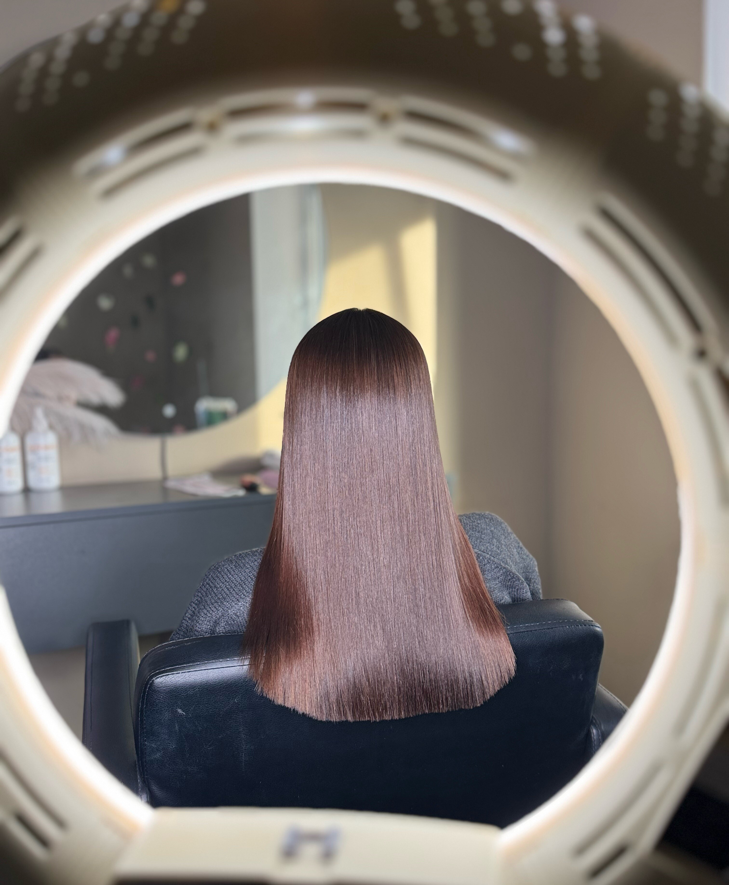 - Кератиновое выпрямление волос до середины лопаток